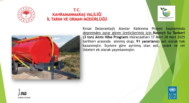 KDAKP BASINÇLI SU TANKERİ ASİL, YEDEK ve RED LİSTELERİ