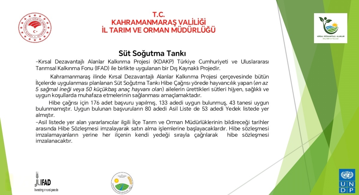 KDAKP SÜT SOĞUTMA TANKI ASİL YEDEK VE RED LİSTESİ