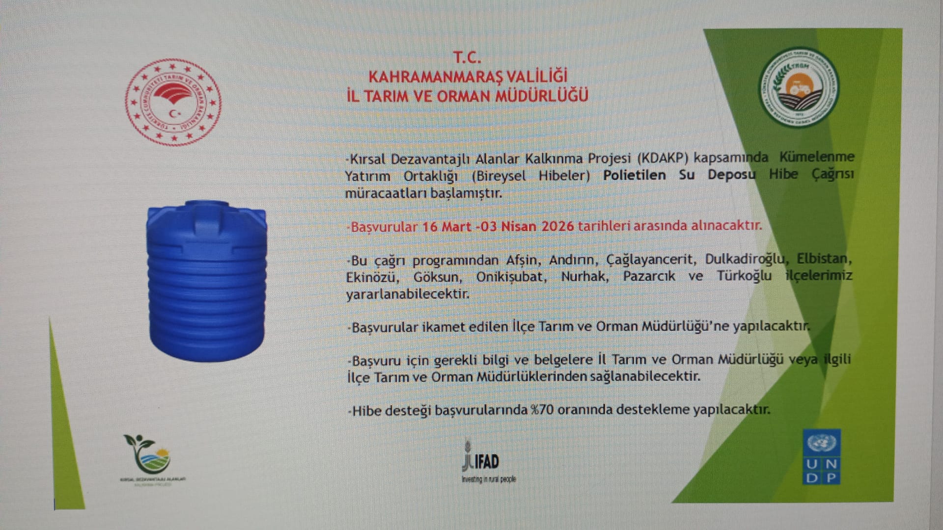 POLİETİLEN SU DEPOSU HİBE ÇAĞRISI