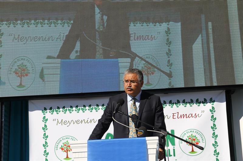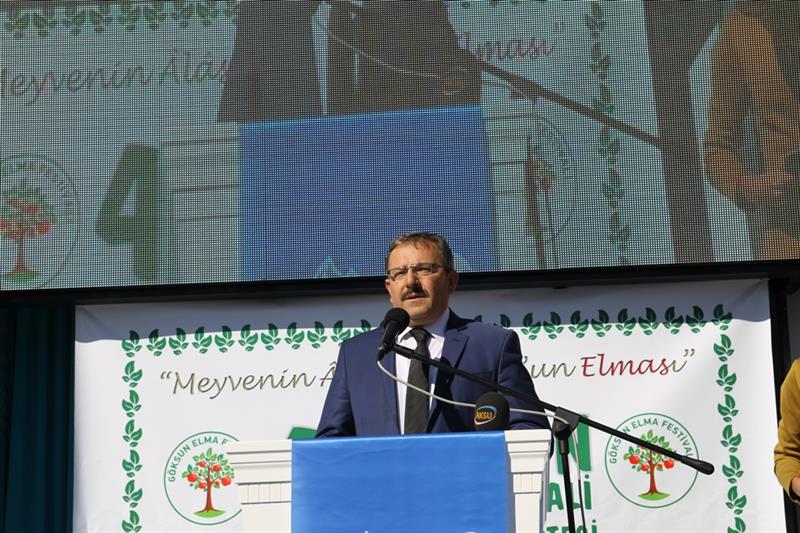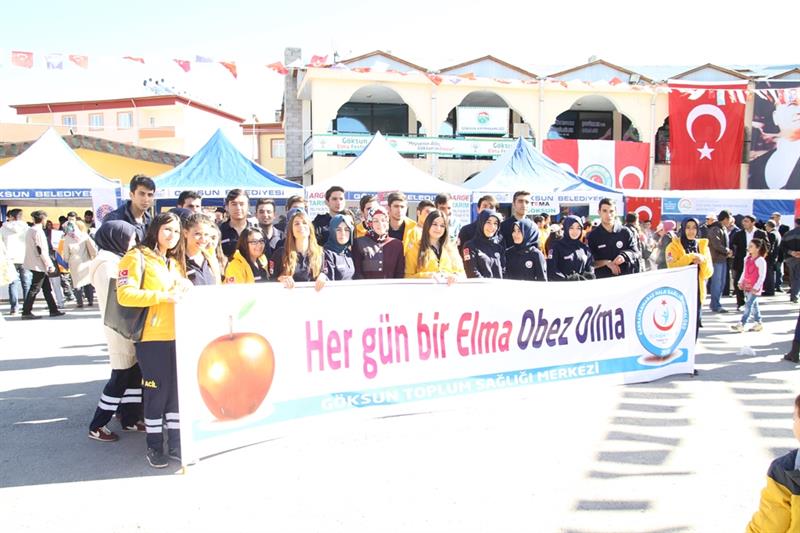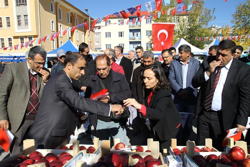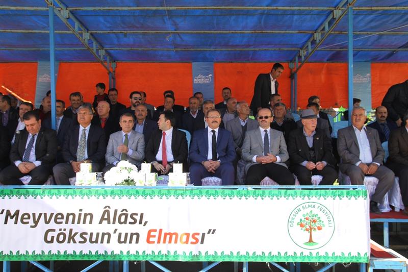 Göksun'un tarihi geçmişi ve doğal güzelliklerinin yanında son yıllarda yetiştirdiği tarım ürünleri ile adından söz ettiren bir ilçe haline geldiğini söyleyen Belediye Başkanı Hüseyin Coşkun Aydın, "İlçemizde yaklaşık 32 bin dekar alanda modern teknik ile yetiştirilen Göksun Elmasının yıllık rekoltesi yaklaşık 45 bin ton civarındadır. İlçemizin iklim koşullarına bağlı olarak gece ve gündüz arasındaki sıcaklık farkı nedeniyle özellikle elmaya renk veren 'anestesion' oluşumunda ilçemiz üstün özelliklere sahiptir. Bu nedenle Göksun elması daha canlı, daha kırmızı ve daha güzel bir aromaya sahiptir. Bundan dolayı Göksun da üretilen "Red Chief", " Starkrimson" ve " Starking" çeşidi elmalar ihracatın yanı sıra başta İstanbul ve Ankara olmak üzere birçok büyük şehire Göksun Elması olarak talep edilmektedir." Dedi. Göksun da ulusal boyutta önemli bir yere sahip festival yapılmasının en önemli aktörlerinin üreticiler olduğunu belirten Aydın, sözlerine son verdi.
