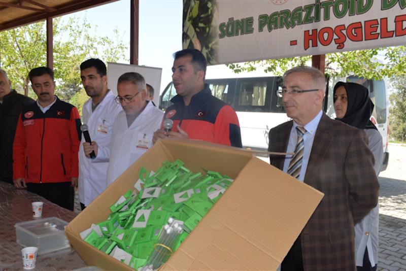 Süne zararlısı hububatta verim ve özellikle kalite kayıplarına sebep olmaktadır. Biyolojik mücadele kapsamında süne yumurta parazitoitleri salınımı gerçekleştirilecektir. Parazitoitler sünenin bırakmış olduğu yumurtanın içine kendi yumurtasını bırakarak süne popülasyonunu azaltmada çok önemli bir rol oynamaktadır. Bu amaçla Adana Biyolojik Mücadele Araştırma Enstitüsü tarafından üretilmiş olan 85.000 adet süne parazitoiti doğaya salınarak biyolojik mücadeleye katkı sağlaması amaçlanmaktadır.
